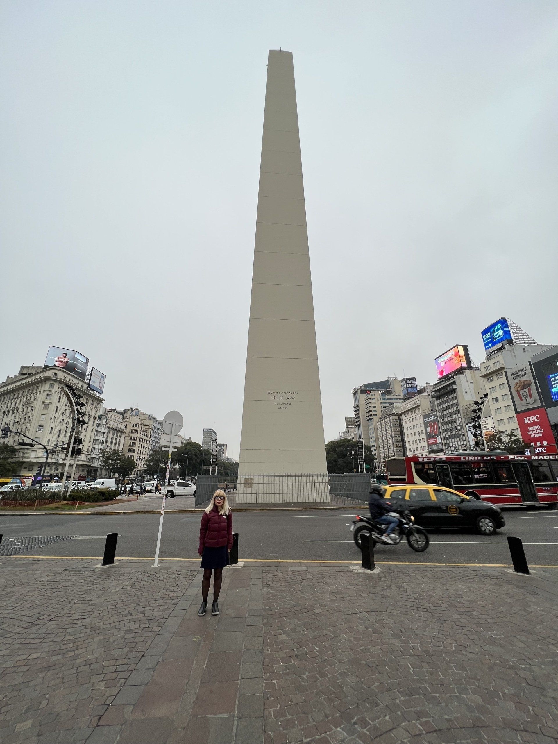 È stato progettato da Alberto Prebisch, un architetto argentino. La sua ispirazione è chiara: gli obelischi che si trovavano nell'antico Egitto all'ingresso dei templi. In effetti, il suo creatore ha riconosciuto che aveva ideato il progetto del monumento basato sugli obelischi che aveva visto durante i suoi viaggi a Parigi.