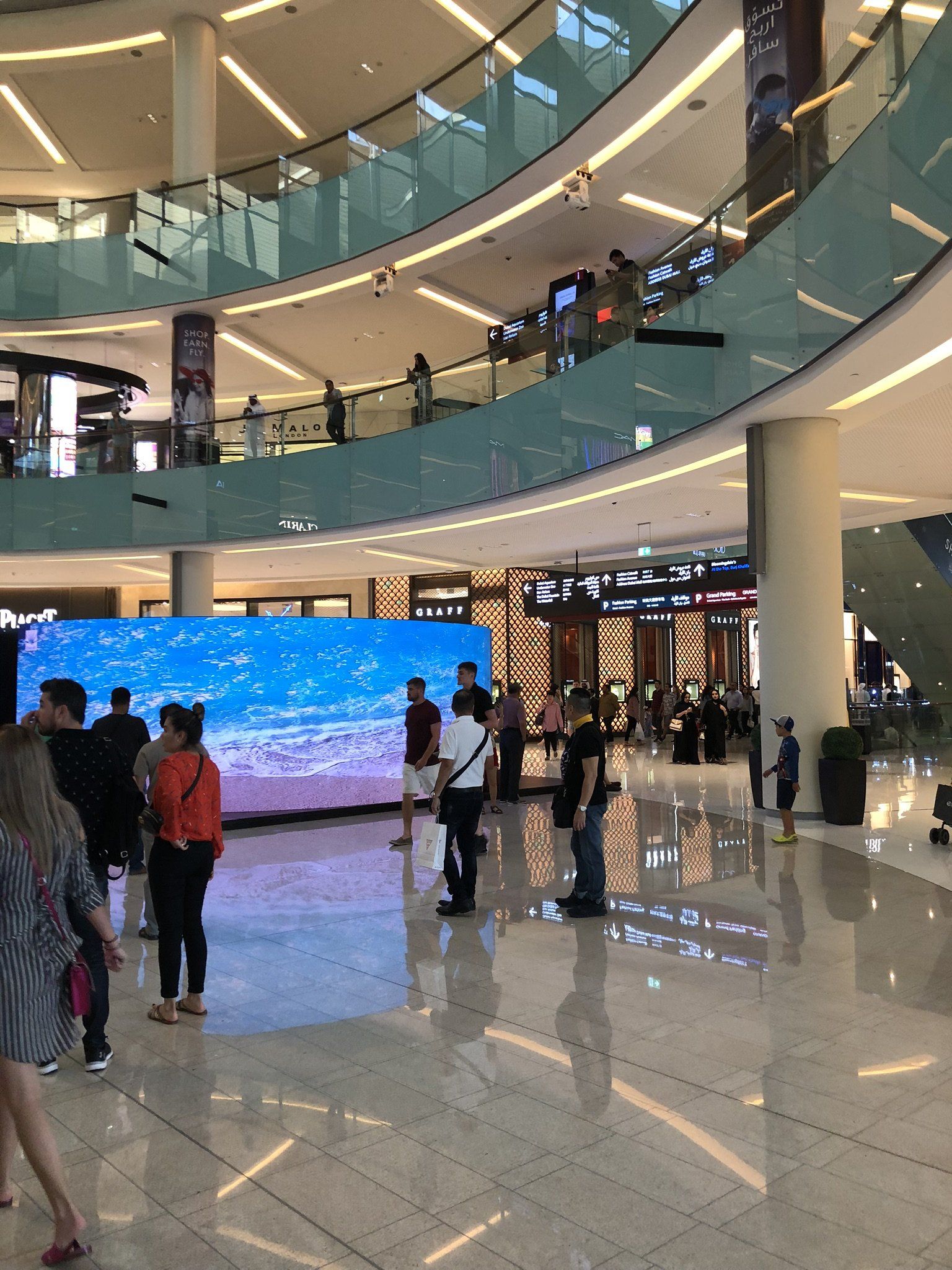 Il Burj Khalifa è una torre di 830 m, che spicca tra i grattacieli del paesaggio urbano. Ai suoi piedi si trova la Dubai Fountain, i cui spruzzi d'acqua creano coreografie con musica e luci.