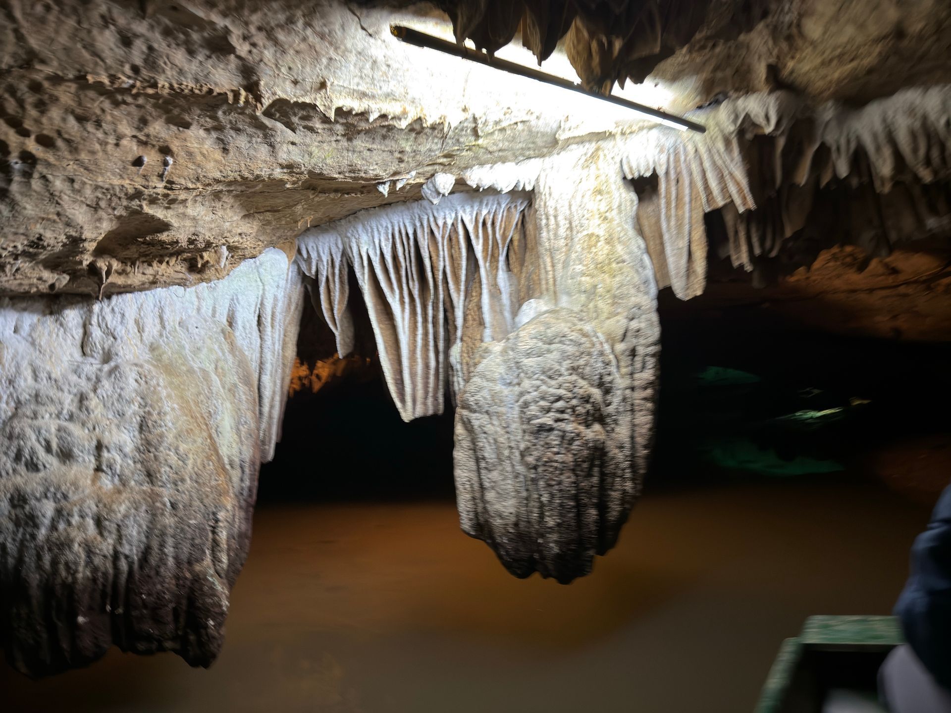 La seconda parte della grotta è una grotta d'acqua che può essere esplorata con una piccola barca. Il giro in barca porta i visitatori attraverso un fiume sotterraneo che scorre nella grotta. Il fiume è circondato da imponenti scogliere calcaree e i riflessi delle stalattiti nell'acqua creano un effetto visivo spettacolare. I visitatori possono anche ammirare le impressionanti stalattiti che pendono dal soffitto e le stalagmiti che si ergono dal pavimento della grotta. Il giro in barca è un'esperienza indimenticabile che mette in mostra la bellezza naturale della grotta.
