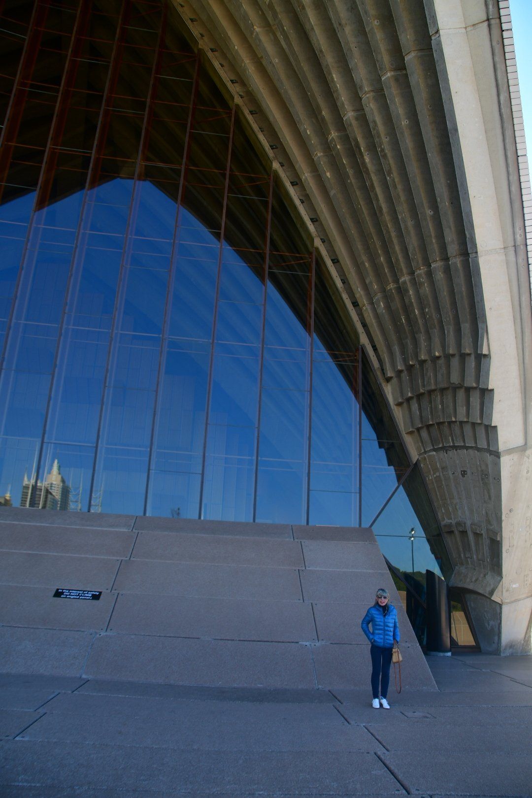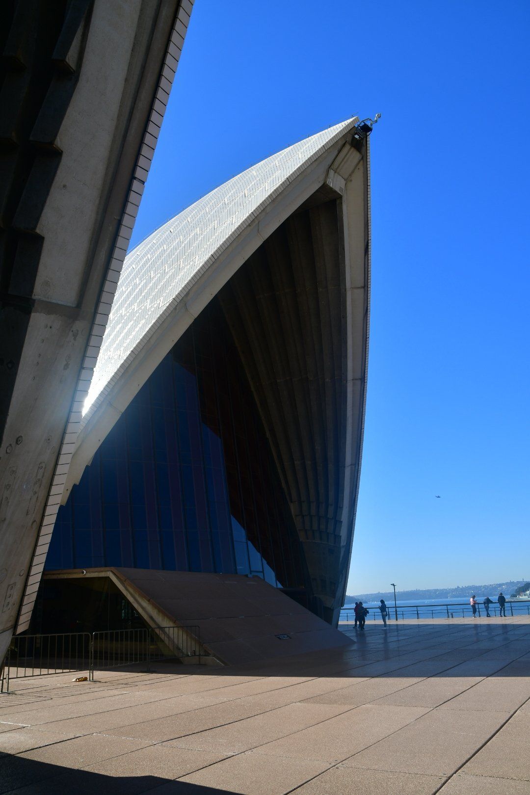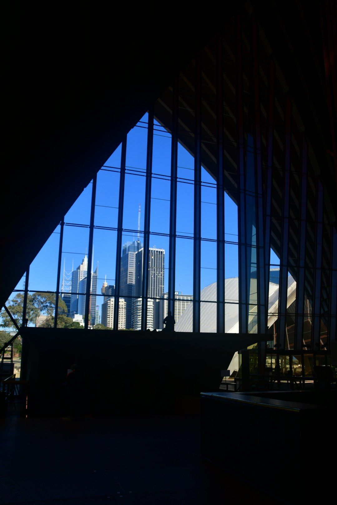 L’intera costruzione poggia su una grande piattaforma in granito lunga 185 metri e larga 120: fu finita nel febbraio del 1963. I gusci sono stati progettati da Utzon con la collaborazione della società di ingegneria inglese Arup. Sono composti da “costole” di calcestruzzo ricoperto da piastelle bianche, e formano a coppie una specie di volta: le più grandi sono chiuse dal lato principale da vetrate molto alte. È stato stimato che sono stati utilizzate circa 2400 costole prefabbricate, costruite nel cantiere e poi montate sull’edificio.